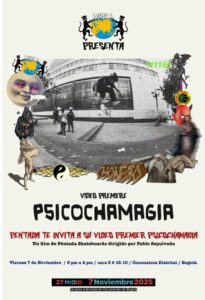 Dos miradas documentales que retratan la energía creativa de las calles colombianas. Psicochamagia sigue a un grupo de skaters que fusionan trucos, diseño y arte de vida; mientras que Street Frames viaja con un grafitero colombiano a Filadelfia, explorando la huella visual y emocional del arte urbano.
